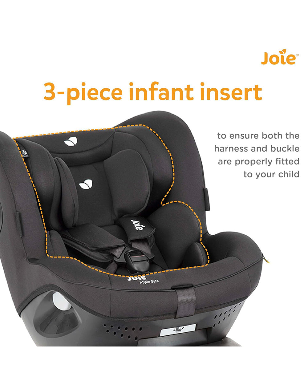 Joie i-Spin Safe Baby Car Seat-Rear Facing-Swedish Plus Test Certified (Toughest Crash Test)-90 Degrees Rotation-3 Piece Infant Insert-6 Positions Adjustable Headrest-2 Years Warranty-For 0 to 4Y (Upto 18.5Kg)-Coal