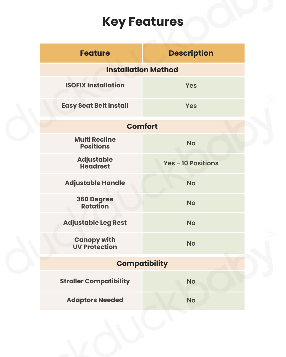 - i-Size Certified: Designed for a perfect fit in i-Size approved vehicles, offering peace of mind during every journey.