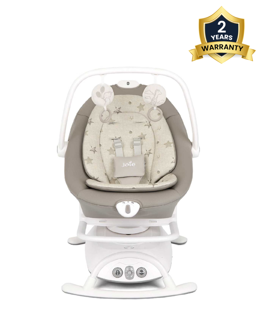 - Engaging Toy Bar: Comes with a toy bar featuring two plush toys to entertain and engage your little one during their soothing sessions.
