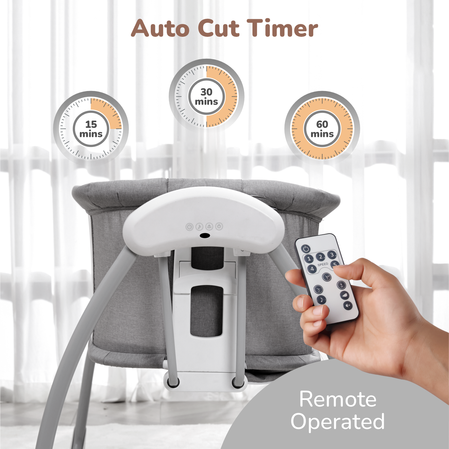 Timer Options: Set the perfect duration for rocking with the smart timer for 15, 30 and 60 mins with 5 levels of speed adjustments, allowing you to customize your baby's sleep routine.