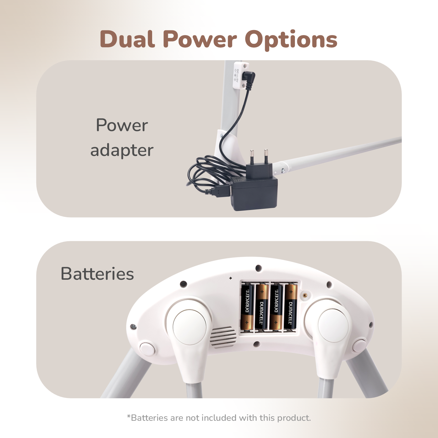 Dual power options: R for Rabbit’s Lullabies Smart Electric Cradle can be operated effortlessly via power adapter or batteries. It also comes with a remote control for added convenience.